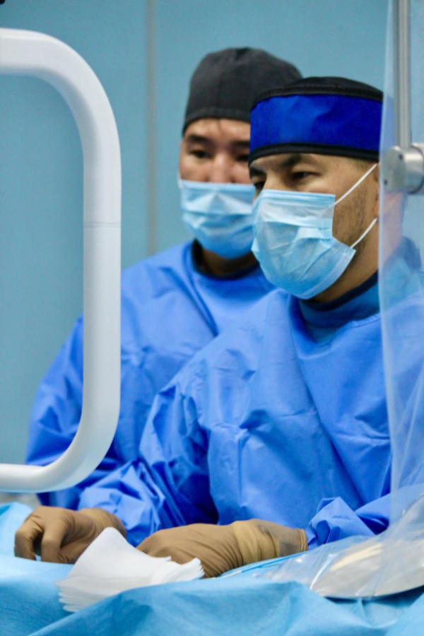 «Ми құрылымдарының қысылу қаупі аса жоғары болғанын ескере отырып, пациентке үш отаны қатарынан жасау қажет болды. Біріншісі – жарылған аневризманы эндоваскулярлық эмболизациялау. Бұл – қанды тоқтатып, қайта жарылудың алдын алуға мүмкіндік беретін зақымы аз нейрохирургиялық әдіс. Екіншісі – сыртқы қарыншалық дренаж орнату. Оның мақсаты – басішілік қысымды төмендетіп, ми жұлыны сұйықтығының айналымын тұрақтандыру. Үшіншісі – ми ішіндегі гематоманы алып тастайтын декомпрессиялық ота. Бұл аса дәл микроскопиялық техниканы қажет ететін көлемді нейрохирургиялық араласу», дейді Алматы №4 қалалық клиникалық аурухана нейрохирургы Алдонгар Айсаутов.