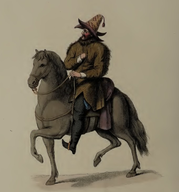 1803 жылы Ұлыбритания астанасы Лондон қаласында «Ресей империясының киім мәдениеті» атты кітап В.Миллер және басқа авторлар тарапынан жарық көрді. Бұл – империя құрамындағы халықтардың киім-кешек мәдениетін Батыс әлеміне таныстыруды мақсат еткен бірден-бір еңбек. Ағылшын және француз тілінде түсіндірме беріліп, әр халықтың киім үлгісі туралы ақпарат жеткізетін еңбектің біздің мәдениет үшін маңызы жоғары. Төменде кітапта жазылған түсіндірмені қаз-қалпында аударып беріп отырмыз.